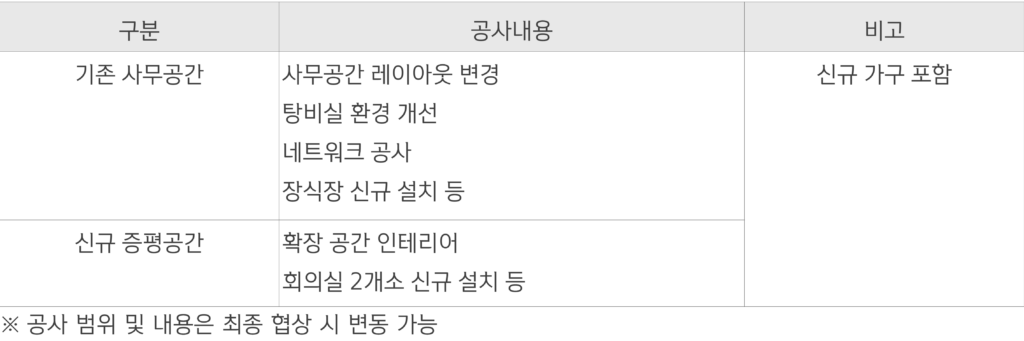 3. 입찰내용: 당사 사무공간 인테리어 설계 및 시공 용역